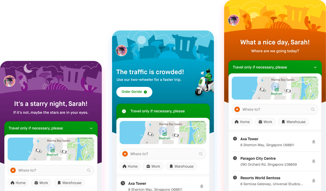 Introduced a more illustrative and dynamic hero section that adapted to contextual factors like time of day, traffic, weather, and location. This provided a more personalized and immersive experience for users across different regions.